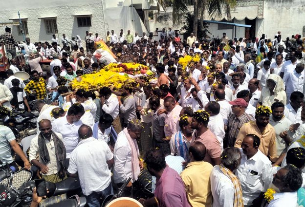 విశాలాంధ్ర, కళ్యాణదుర్గం: తెలుగుదేశం పార్టీ రాష్ట్ర ఉపాధ్యక్షులు, మాజీ ఎమ్మెల్యే ఉన్నం హనుమంతరాయ చౌదరి అంత్యక్రియలు ఆదివారం కళ్యాణదుర్గం మండలం ఎర్రంపల్లి గ్రామంలో అభిమానులు, పార్టీ కార్యకర్తల అశ్రునయనాల మధ్య నిర్వహించబడ్డాయి. వేలాది మంది అభిమానులు తరలివచ్చి పెద్దాయన్ను చివరిసారిగా చూసి కన్నీళ్లు పెట్టుకున్నారు. టిడిపి పొలిట్బ్యూరో సభ్యుడు శ్రీనివాసరెడ్డి, స్థానిక నాయకులు, వైసీపీ, కాంగ్రెస్, సిపిఐ నేతలు అంత్యక్రియల్లో పాల్గొని నివాళులు అర్పించారు. మృతుడి కుటుంబ సభ్యులు భార్య లక్ష్మీదేవి, కుమారులు వీరేష్ మారుతి చౌదరి, ఉదయ్ భాస్కర్ చౌదరి, తమ్ముడు వీసీ చౌదరి తదితరులు పాల్గొన్నారు. మాజీ ఎమ్మెల్యే హనుమంతరాయ చౌదరి వ్యవసాయ క్షేత్రంలో దహన సంస్కారాలు నిర్వహించారు.ఈ సందర్భంగా పలువురు నాయకులు, ప్రజలు మాట్లాడుతూ— నియోజకవర్గ అభివృద్ధి కోసం ఆయన చేసిన సేవలను స్మరించుకున్నారు. ముఖ్యంగా సాగునీరు, తాగునీరు, రహదారుల నిర్మాణం, ఆరోగ్య కేంద్రాల ఏర్పాటు, మున్సిపాలిటీ అభివృద్ధికి ఆయన చేసిన కృషిని కొనియాడుతూ భావోద్వేగానికి గురయ్యారు.