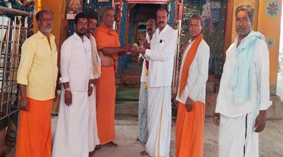 విశాలాంధ్ర-పెద్దకడబూరు :(కర్నూలు) మండల పరిధిలోని చిన్నకడబూరు గ్రామంలో వెలసిన శ్రీశ్రీశ్రీ ఆంజనేయస్వామి దేవాలయం నిర్మాణానికి శనివారం తెలుగుదేశం పార్టీ సీనియర్ నాయకులు మధుసూదన్ రెడ్డి 10,016 రూపాయలు ఆలయ ధర్మకర్త నల్లారెడ్డికి విరాళంగా అందజేశారు. ఈ సందర్భంగా ఆయన మాట్లాడుతూ ఆలయ నిర్మాణానికి తనవంతు సహాయం చేసినందుకు తనకు చాలా సంతోషంగా ఉందని తెలిపారు. ఈ కార్యక్రమంలో ఆలయ పూజారి నరసింహులు, గ్రామ పెద్దలు ఎంజీ నరసన్న, ఈరన్న, టీడీపీ నాయకులు బాబు తదితరులు పాల్గొన్నారు.