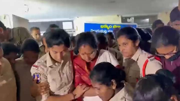 ఖమ్మం నగరంలో వెలుగుమట్ల భూదాన్ భూమి బాధితుల తరఫున పోరాడుతున్న తెలంగాణ జాగృతి అధ్యక్షురాలు కల్వకుంట్ల కవితను పోలీసులు అరెస్ట్ చేశారు. బాధితులకు మద్దతుగా ఖమ్మం అంబేద్కర్ భవన్లో ఆమె చేపట్టిన నిరాహార దీక్షను పోలీసులు మంగళవారం తెల్లవారుజామున భగ్నం చేశారు. కవితతో పాటు బీసీ, ఎస్సీ, ఎస్టీ ఐకాస రాష్ట్ర ఛైర్మన్ విశారదన్ మహరాజ్ను కూడా పోలీసులు కస్టడీలోకి తీసుకున్నారు. నేటి ఉదయం 6 గంటల సమయంలో ఖమ్మం సీపీ ఆధ్వర్యంలో సుమారు 600 మంది పోలీసులు ఒక్కసారిగా దీక్షా శిబిరాన్ని చుట్టుముట్టారు. నాయకులందరినీ బలవంతంగా వాహనాల్లో ఎక్కించి హైదరాబాద్కు తరలించారు. ఏళ్ల తరబడి నివసిస్తున్న పేదలపై ప్రభుత్వం ఉక్కుపాదం మోపడం దుర్మార్గమని ఈ సందర్భంగా కవిత మండిపడ్డారు. పోలీసు కస్టడీలో ఉన్నప్పటికీ తన నిరాహార దీక్ష కొనసాగుతుందని కవిత స్పష్టం చేశారు. ప్రభుత్వం దిగివచ్చి, కూల్చివేతలు జరిగిన చోటే బాధితులకు ఇందిరమ్మ ఇళ్లు, ఇంటి స్థలాలు కేటాయించాలని ఆమె డిమాండ్ చేశారు. బాధితులకు పూర్తిస్థాయిలో న్యాయం జరిగే వరకు తమ పోరాటం ఆగదని హెచ్చరించారు.