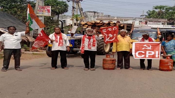 విశాలాంధ్ర, నెల్లిమర్ల /కంటోన్మెంట్ :​నెల్లిమర్ల విద్యుత్ స్టోర్స్ వద్ద మంగళవారం వామపక్షాల ఆధ్వర్యంలో భారీ నిరసన ప్రదర్శన జరిగింది. పెంచిన గ్యాస్ ధరలను వెంటనే తగ్గించాలని డిమాండ్ చేస్తూ సీపీఐ, సీపీఎం నేతలు ముయ్యద పాపారావు, కిల్లంపల్లి రామారావు ఆధ్వర్యంలో ధర్నా నిర్వహించారు. కేంద్రంలోని మోడీ ప్రభుత్వం యుద్ధాన్ని సాకుగా చూపి కమర్షియల్ సిలిండర్‌పై ₹150, గృహ అవసరాల సిలిండర్‌పై ₹60 పెంచి సామాన్యుల నడ్డి విరిచిందని వారు మండిపడ్డారు. రాష్ట్రంలో ప్రజా సమస్యలను గాలికి వదిలేసి లడ్డు చుట్టూ రాజకీయాలు చేయడం దుర్మార్గమని విమర్శించారు. యుద్ధం కారణంగా అంతర్జాతీయ మార్కెట్లో ఆయిల్ ధరలు పెరిగి సామాన్య ప్రజలు తీవ్ర ఇబ్బందులు పడతారని అన్నారు.ఈ కార్యక్రమంలో తాలాడ రామకృష్ణ, కనకల పద్మనాభం తదితరులు పాల్గొన్నారు.