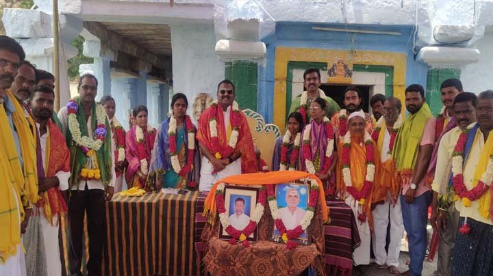 విశాలాంధ్ర – పెద్దకడబూరు (కర్నూలు) : మండల పరిధిలోని చిన్నతుంబళం గ్రామంలో సర్పంచ్ పదవి ముగీయడంతో సర్పంచు బసమ్మ, ఉప సర్పంచ్ సంగీత, వార్డు సభ్యులు మంజునాథ్, హరిజన మరియమ్మ, తెలుగు రమేష్, చాకలి ఈరమ్మ, మాల శివ, మంగలి నర్సమ్మలను శనివారం టీడీపీ రైతు విభాగం రాష్ట్ర అధికార ప్రతినిధి నరవ రమాకాంతరెడ్డి, జిల్లా మాజీ అధ్యక్షులు తిక్కారెడ్డి కుమారుడు దివాకర్ రెడ్డి, ఇంద్రసేనారెడ్డి, సీనియర్ నాయకులు సిద్దప్ప ధని, వీరేష్ గౌడ్ లు ఘనంగా సన్మానించారు. ఈ సందర్భంగా వారు మాట్లాడుతూ సర్పంచ్ బసమ్మ తన పదవీ కాలంలో గ్రామంలో తాగునీటి సమస్య, వీధి దీపాలు, డ్రైనేజీ వ్యవస్థ, పారిశుధ్యం తదితర సమస్యలను పరిష్కరిస్తూ గ్రామాన్ని అభివృద్ధి బాటలో నడపారన్నారు. రాబోయే స్థానిక సంస్థల ఎన్నికల్లో కూడా అందరూ ఐక్యంగా ఉండి టీడీపీ అభ్యర్థులను గెలిపించేందుకు కృషి చేయాలని కోరారు. ఈ కార్యక్రమంలో సాగునీటి సంఘం అధ్యక్షులు చాకలి నారాయణ, చాకలి చంద్రశేఖర్, విద్యాకమిటీ చైర్మన్ వెంకటేష్, నాయకులు గోసలి తిక్కయ్య, హుస్సేన్, బద్రి, మాల శివ, మాల రవి, కోడిగుడ్ల నజీర్, కందనాతి మహేష్ తదితరులు పాల్గొన్నారు.