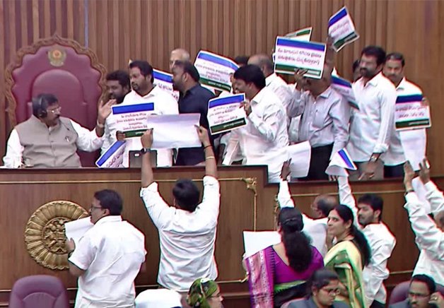 . టీడీపీ సభ్యుల నిరసనలు