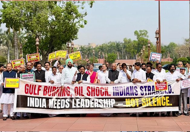 అంతకుముందు, బడ్జెట్ సమావేశాల రెండవ భాగంలో వ్యూహాన్ని చర్చించడానికి ప్రతిపక్ష పార్టీల ఫ్లోర్ లీడర్లు పార్లమెంటు హౌస్ కాంప్లెక్స్లోని రాజ్యసభలో ప్రతిపక్ష నాయకుడు ఖడ్గే ఛాంబర్లో సమావేశమయ్యారు. ఇదిలాఉండగా, ‘బడ్జెట్ సమావేశాల రెండవ భాగానికి పార్లమెంటు తిరిగి సమావేశమవుతున్న తరుణంలో, ఇరాన్పై అమెరికాఇజ్రాయిల్ దాడులు... మన ఇంటి వెనుక భాగానికి చేరుకుంది. ఈ సందర్భంలో ప్రస్తుత భౌగోళిక రాజకీయ సంక్షోభంపై పూర్తి స్థాయి చర్చ జరగడం అత్యవసరం’ అని ఖడ్గే ‘ఎక్స’ పోస్ట్లో పేర్కొన్నారు. ‘ఈఏఎం ఏకపక్ష ప్రకటన పరిష్కారం కాదు. మనం సమష్టిగా దేశాన్ని విశ్వాసంలోకి తీసుకోవాలి. మన ఇంధన భద్రతను నిర్ధారించడానికి, మన వ్యాపారులకు సహాయం చేయడానికి, మన ఎగుమతులకు సరఫరా గొలుసులను వైవిధ్యపరచడానికి, ధరల పెరుగుదలతో మన ప్రజలను శిక్షించడాన్ని ఆపడానికి జీవోఐ (భారత ప్రభుత్వం) ఒక వివరణాత్మక అత్యవసర ప్రణాళికను రూపొందించాలి. ప్రతిపక్షం మన ప్రజల పట్ల సున్నితత్వాన్ని కోరుతోంది’ అని సమావేశం తర్వాత ఖడ్గే అన్నారు. పార్లమెంటు ఆవరణలో నిరసన పశ్చిమాసియా వివాదంపై చర్చకు డిమాండ్ చేస్తూ, దానికి సంబంధించిన కీలక అంశాలపై ప్రభుత్వం ‘మౌనం’ వహించడంపై ప్రతిపక్షాలు విమర్శలు గుప్పించాయి. కాంగ్రెస్ అధ్యక్షుడు మల్లికార్జున ఖడ్గే, కాంగ్రెస్ అగ్రనేత రాహుల్ గాంధీ, ఎస్పీ అధినేత అఖిలేశ్ యాదవ్ సహా ప్రతిపక్ష ఎంపీలు పార్లమెంటు ఆవరణలో నిరసన తెలిపారు. అంతకుముందు, బడ్జెట్ సమావేశాల రెండవ భాగంలో వ్యూహాన్ని చర్చించడానికి పార్లమెంటు ఆవరణలోని రాజ్యసభ నాయకుడి గదిలో ప్రతిపక్ష పార్టీల ఫ్లోర్ లీడర్లు సమావేశమయ్యారు. ఖడ్గే, రాహుల్ గాంధీతో పాటు సమాజ్వాదీ పార్టీకి చెందిన రామ్ గోపాల్ యాదవ్, డీఎంకేకు చెందిన దయానిధి మారన్, ఎన్సీపీ(ఎస్పీ) నాయకురాలు సుప్రియా సూలే, శివసేన (యూబీటీ) నాయకుడు సంజయ్ రౌత్ తదితరులు ఈ సమావేశంలో పాల్గొన్నారు. తరువాత ప్రతిపక్ష ఎంపీలు పార్లమెంటులోని మకర ద్వారం సమీపంలో నిరసన ప్రదర్శన నిర్వహించారు. ‘గల్ఫ్ దహనం... చమురు షాక్... భారతీయులు చిక్కుకుపోయారు... భారతదేశానికి నాయకత్వం అవసరంనిశ్శబ్దం కాదు’ అని రాసిన భారీ బ్యానర్తో ఎంపీలు ప్రభుత్వానికి, ప్రధాన మంత్రి నరేంద్ర మోదీకి వ్యతిరేకంగా నినాదాలు చేశారు. ఈ నిరసనలో ఖడ్గే, రాహుల్ గాంధీ, అఖిలేశ్, టీఎంసీకి చెందిన సాగరిక ఘోష్ తదితరులు పాల్గొన్నారు.
