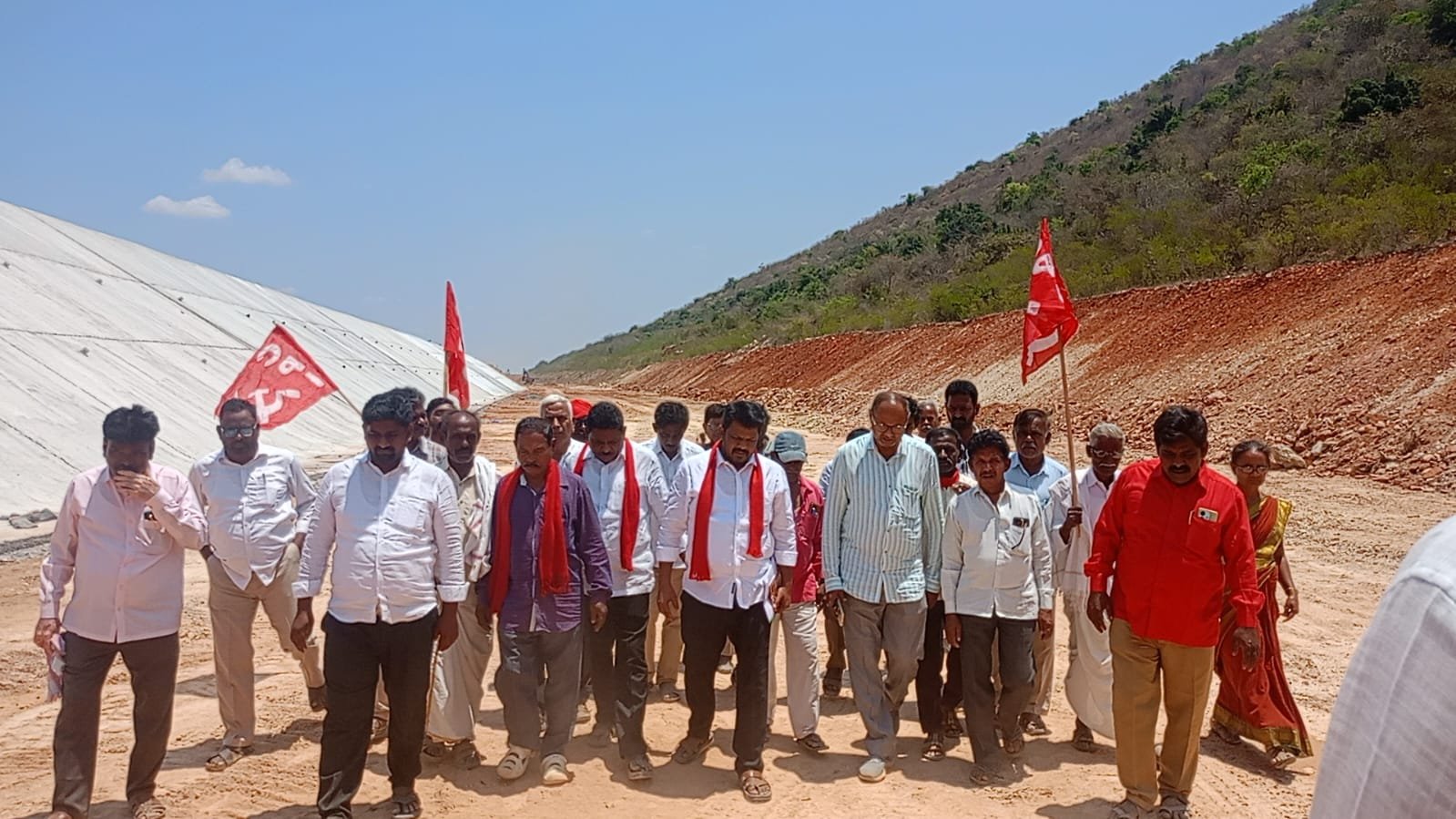 పుల సుబ్బయ్య వెలుగొండ ప్రాజెక్ట్ ను ఈ సంవత్సరం జూన్ నాటికి పూర్తిచేస్టారా అని సిపిఐ రాష్ట్ర కార్యదర్శి గుజ్జుల ఈశ్వరయ్య రాష్ట్ర ప్రభుత్వాన్ని ప్రశ్నించ్చారు.గురువారం దోర్నాల వద్ద వెలిగొండ ప్రాజెక్టు నిర్మాణాపనులను సిపిఐ మార్కాపురం జిల్లా నాయకులతో కలిసి ప్రాజెక్ట్ ను సందర్శించారు. ఈ సందర్భంగా ఈశ్వరయ్య మీడియా వారితో మాట్లాడుతూ ఇటీవల రాష్ట్ర ముఖ్య మంత్రి శ్రీ నారా చంద్రబాబు నాయుడు ప్రాజెక్ట్ ను మొదటి పేస్ 2026 జూన్ నాటికి పూర్తిచేసి నీరు ఇస్తాము అని ప్రకటించారు. కానీ బడ్జెట్ లో నిధులు అరకొరగా కేటాఇంపులు పలు అనుమానాలకు అవకాశం అల్పిస్తున్నాయన్నారు. గత 30సంవత్సరాలుగా ప్రభుత్వాల నేరపూరిత నిర్లక్ష్యం కారణంగా ప్రాజెక్ట్ అంచనాలు పెరిగి పోతున్నాయి తప్ప పనులు ముందుకు పోవడంలేదని ఈశ్వరయ్య విమర్శించారు. ఈ ప్రాంత ప్రజలకళలు సకారమై కరువు ప్రాంత ప్రజల కష్టాలుతీరి వలసలు ఆగుతాయా అని సందేహాలు ఎక్కువ వినిపిస్తున్నాయని అన్నారు.ఇప్పటికైనా ముఖ్య మంత్రి గారు బడ్జెట్ తో సంబంధం లేకుండా 4000 కోట్ల రూపాయలు నిధులను వెలుగొండ ప్రాజెక్టు కేటాయించాలని సి పిఐ పార్టీ రాష్ట్ర కార్యదర్శి గుజ్జల ఈశ్వరయ్య డిమాండ్ చేశారు.గురువారం దోర్నాల మండలంలోని కొత్తూరు గ్రామంలో గల పూల సుబ్బయ్య వేలగొండ ప్రాజెక్ట్ సొరంగమార్గాలను పరిశీలించారు. ఈ సందర్భంగా సిపిఐ మార్కాపురం జిల్లా కార్యదర్శి యం.యల్.నారాయణ, మరియు పార్టీ నాయకులు అందరూ కలిసి వెలుగొండ ప్రాజెక్టు సొరంగాన్ని పరిశీలించి, అక్కడ జరుగుతున్న పనుల గురించి వెలుగొండ ప్రాజెక్టు అధికారులను అడిగి వివరాలను తెలుసుకున్నారు. పనులు ఎమేరకు జరిగాయనే దానిపై అ డిగి తెలుసుకున్నారు, అనంతరం పీడ ర్ కెనాల్ కాలువ పనులను పరిశీలించారు. అక్కడ అధికారులతో పనుల గురించి అడిగి తెలుసుకున్నారు. అనంతరం విలేకరులతో మాట్లాడుతూ పూల సుబ్బయ్య వెలుగొండ ప్రాజెక్టుకు బడ్జెట్ తో సంబంధం లేకుండా తో సంబంధం లేకుండా ప్రత్యేక నిధులు కేటాయించి 4000 కోట్లు కేటాయించాలని, అలాగే 11గ్రామాల నిర్వాసితుల ఆర్ & ఆర్ ప్యాకేజి సమస్య పరిష్కరించాలని, ప్యాకేజీ పరిష్కరించాలనికి తక్షణం 1000 కోట్లు కేటాయించాలని ప్రభుత్వాన్ని కోరారు.