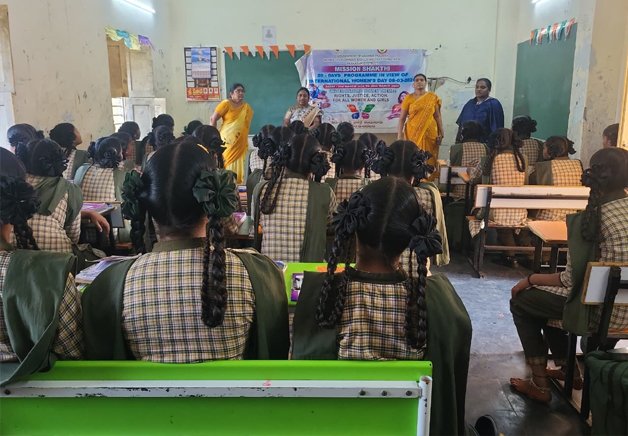 విశాలాంద్ర – వలేటివారిపాలెం : మహిళలు గర్భిణీగా ఉన్న సమయంలో లింగ నిర్దారణ పరీక్షలు చేయడం చట్టరీత్యా నేరం అని నువ్వు అంగన్వాడీ సూపర్వైజర్ సునీత అన్నారు.కందుకూరు ప్రాజెక్టు వలేటివారిపాలెం మండలం లోని కేజీబీవీ పాఠశాల నందు సిడిపిఓ కే ఉషారాణి సూచనల మేరకు అంతర్జాతీయ మహిళా దినోత్సవం మార్చి 8 సందర్భంగా మిషన్ శక్తి 20 రోజుల ప్రోగ్రాం లో భాగంగా కేజీబీవీ విద్యాలయంలో గురువారం ప్రిన్సిపాల్ అరుణకుమారి అధ్యక్షతన అంగన్వాడీ సూపర్వైజర్ సునీత ఆధ్వర్యంలో అంతర్జాతీయ మహిళా దినోత్సవం ఘనంగా నిర్వహించారు. ఈ సందర్బంగా ప్రధానమంత్రి మాతృవందన యోజన గర్భస్థ శిశు లింగ నిర్దారణ చట్టం పై అవగాహనా కార్యక్రమం నిర్వహించారు.ఈ సందర్బంగా అంగన్వాడి సూపర్వైజర్ సునీత మాట్లాడుతూ కిశోర బాలికలకు మరియు ఉపాధ్యాయులకు గర్భస్థ శిశులింగ నిర్ధారణ నిషేధ చట్టం గురించి భారతదేశంలో ఆడ బ్రూణ హత్యలను అరికట్టడానికి మరియు లింగ నిష్పత్తిని మెరుగుపరచడానికి రూపొందించబడినదని అన్నారు.ఇది గర్భధారణకు ముందు తర్వాత లింగ నిర్ధారణ పరీక్షలను, ప్రకటనలను పూర్తిగా నిషేధిస్తుందని, దీనిని ఉల్లంఘించిన వారికి జరిమానా మరియు జైలు శిక్ష కూడా పడుతుందని అన్నారు.దీని యొక్క ప్రధాన ఉద్దేశం లింగ నిష్పత్తిని కాపాడటం లింగ ఎంపికను నిషేధించడం ఆడపిల్లను పుట్టకముందే చంపడాన్ని నిరోధించడం దీని ప్రధాన లక్ష్యమని అన్నారు.ఈ సందర్బంగా ప్రిన్సిపాల్ అరుణకుమారి మాట్లాడుతూ కిశోర బాలికల పోషకాహారం లైంగిక ఆరోగ్యం మరియు వ్యక్తిగత పరిశుభ్రత, ఋతు పరిశుభ్రత గురించి అవగాహన కల్పించడం జరిగింది . ఈ కార్యక్రమంలో సూపర్వైజర్ సునీత,ప్రిన్సిపాల్ అరుణకుమారి ఉపాధ్యాయులు తదితరులు పాల్గొన్నారు.