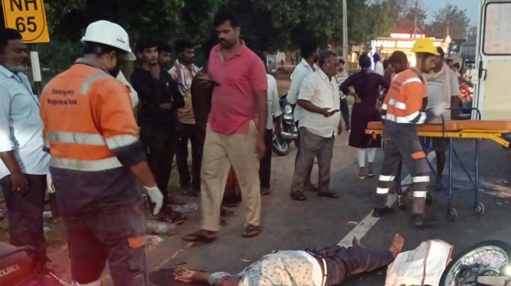 విశాలాంధ్ర నందిగామ :-వోల్వో బస్సు ఢీకొన్న ఘటనలో ఒక వ్యక్తి మృతి చెందిన సంఘటన మండల పరిధిలోని ఐతవరం శివారులో గల మద్రాస్ ఫిల్టర్ కాఫీ వద్ద నేషనల్ హైవే 65 పై శనివారం తెల్లవారుజామున జరిగింది పోలీసులు అందించిన సమాచారం మేరకు చందర్లపాడు మండలం తోటరాములపాడు గ్రామానికి చెందిన స్వామి ఉదయాన్నే తన మోటార్ వాహనంపై హైవేపై వెళుతున్న సమయంలో మద్రాస్ ఫిల్టర్ కాఫీ సమీపంలో రోడ్డు క్రాస్ చేస్తుండగా వెనుక నుండి వోల్వా బస్సు బలంగా ఢీకొట్టడంతో అక్కడకక్కడే స్వామి మృతి చెందినట్లు 108 సిబ్బంది ధ్రువీకరించారు అనంతరం మృతదేహాన్ని నందిగామ మాత్రికి తరలించారు పోలీసులు వాల్వా బస్సు డ్రైవర్ను అరెస్టు చేసి కేసు నమోదు చేసుకుని దర్యాప్తు చేస్తున్నారు….
