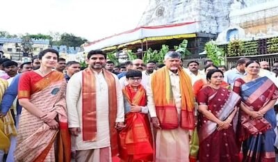 Last Updated:Mar 21, 2026 11:25 AM IST నారా చంద్రబాబునాయుడు కుటుంబంతో తిరుమలలో శ్రీవేంకటేశ్వరస్వామి దర్శనం, నారా దేవాన్ష్ పుట్టినరోజు సందర్భంగా ప్రత్యేక పూజలు, టీటీడీ నుంచి తీర్థప్రసాదాలు. + మనవడి పుట్టినరోజు వేళ.. తిరుమల శ్రీవారిని దర్శించుకున్న సీఎం చంద్రబాబు..! ఆంధ్రప్రదేశ్ రాష్ట్ర ముఖ్యమంత్రి నారా చంద్రబాబునాయుడు శనివారం ఉదయం తిరుమల శ్రీవేంకటేశ్వరస్వామివారిని దర్శించుకున్నారు. తన మనవడు నారా దేవాన్ష్ పుట్టినరోజును పురస్కరించుకుని ఆయన తన సతీమణి భువనేశ్వరి, కుమారుడు రాష్ట్ర మంత్రి నారా…