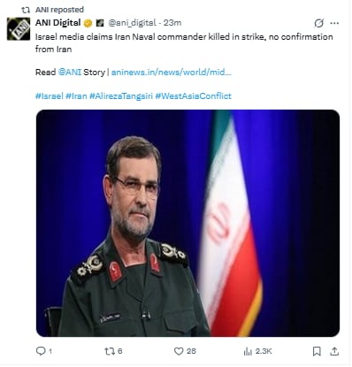 హర్మూజ్ జలసంధి ప్రాంతంలో ఇజ్రాయెల్ మెరుపు దాడులకు పాల్పడుతోంది. ఈ దాడిలో ఇరాన్ నేవీ చీఫ్ అలిరెజా తంగ్సిరీ మరణించినట్లు ఇజ్రాయెల్ రక్షణ దళాలు(ఐడీఎఫ్) ప్రకటించాయి. ఇరాన్ సముద్ర తీర రక్షణ, హర్మూజ్ జలసంధిపై పట్టు సాధించడంలో అలిరెజా తంగ్సిరీ కీలక పాత్ర పోత్సహిస్తూ వస్తున్నారు. ఇరాన్ రివల్యూషనరీ గార్డ్స్ కార్ప్స్ నావికా దళానికి ఆయన నాయకత్వం వహించారు. ఇలా ఇజ్రాయెల్ మెరుపు దాడులు చేయడంతో ముఖ్యంగా తంగ్సిరీని లక్ష్యంగా చేసుకుని దాడులు పాల్పడంతో ఇరాన్ సైనిక ఆత్మవిశ్వాసాన్ని దెబ్బ తీసేలా చర్యలు ప్రారంభించారు.